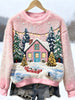 Women's Christmas Inspired House Building Embroidered Furry Sweatshirt